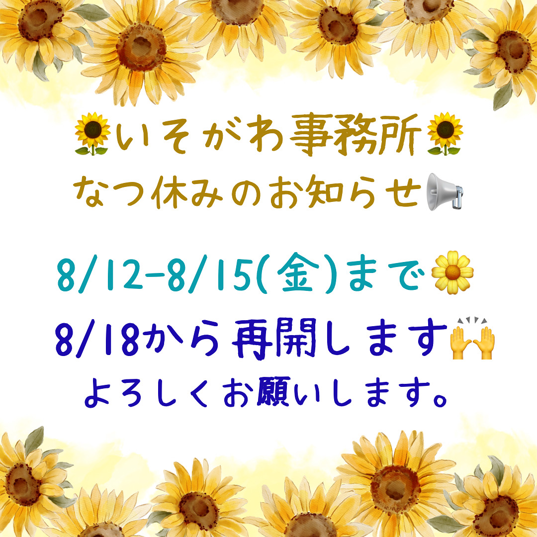 みなさまへ🍀 本日から15日まで、事務所はお休みをいただきます。五十川へのご連絡は、メール✉️やSNSで取れます🌺510yuka.suita@gmail.com […]