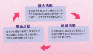 毎回必ず質問、内容は議会だよりを作り市内に配布。議案は是々非々の立場で、一つづつ賛否を判断します。